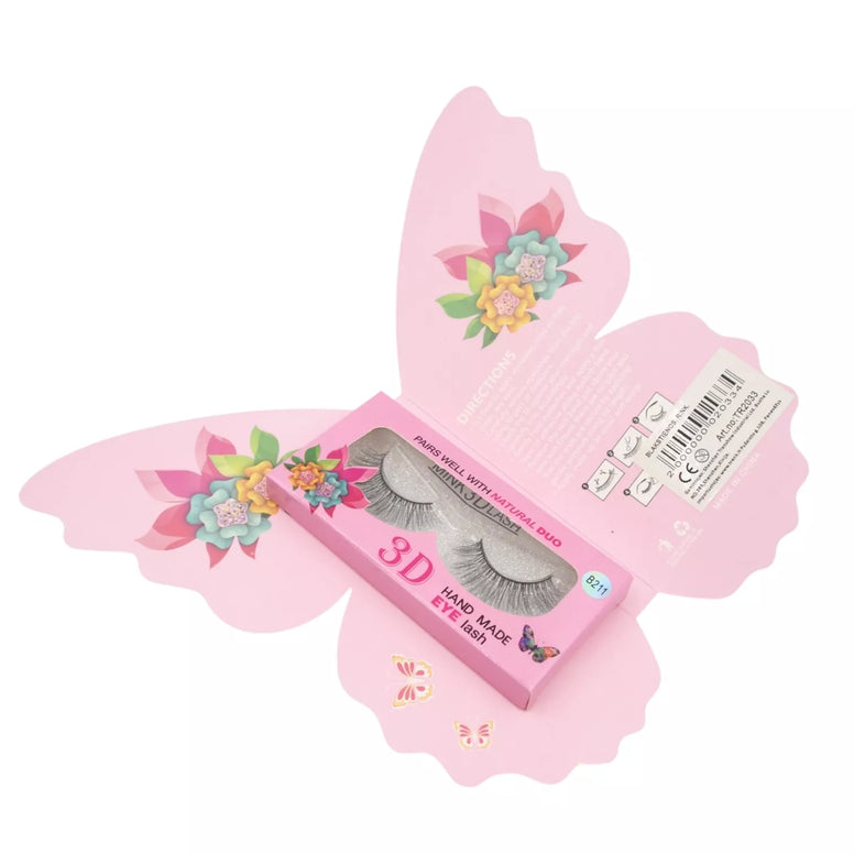 Šios blakstienos supakuotos į spalvingą, drugelio formos pakuotę, kuri ne tik papildys produktą elegancija, bet ir taps išskirtine dovana grožio mylėtojai. Ryškūs žiedai, drugeliai ir pastelinių spalvų detalės sukuria pasakišką įspūdį, o viduje – tobulai išlenktos, natūraliai atrodantis 3D blakstienų pora.