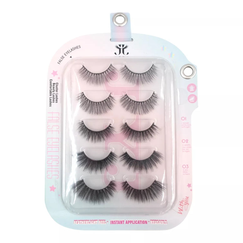 Rinkinyje yra net penkios kruopščiai suformuotos blakstienų poros, kurios leidžia kurti skirtingus makiažo stilius: