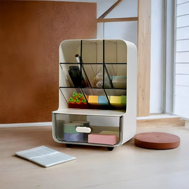 Tvarka ant stalo dar niekada nebuvo tokia estetiška! Ši kompaktiška ir stilinga stalo organizavimo dėžutė puikiai tinka biurui, mokykliniam stalui ar kosmetikos laikymui. Dėl skaidrių skyrių lengvai matysite, kur kas sudėta, o papildomas stalčius suteiks daugiau vietos smulkmenoms.