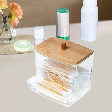 Elegantiškas ir itin praktiškas indas ausų krapštukams. Nepakeičiamas kiekviename vonios kambaryje ir tualetiniame stalelyje. Pagaminta iš patvaraus, skaidraus plastiko. Organizatorius turi atvirą angą, leidžiančią lengvai paimti lazdeles. Taip pat yra nuimamas viršutinis dangtelis su rankena. Subtilus dizainas ir skaidrumas užtikrina, kad konteineris susilies su fonu.