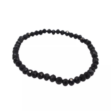 Klasikinė juoda karoliukų apyrankė – minimalistinis, bet stilingas aksesuaras, tinkantis tiek kasdieniam įvaizdžiui, tiek ypatingoms progoms. Blizgūs, deimanto pjūvį primenantys karoliukai subtiliai žėri šviesoje, suteikdami išskirtinumo.
