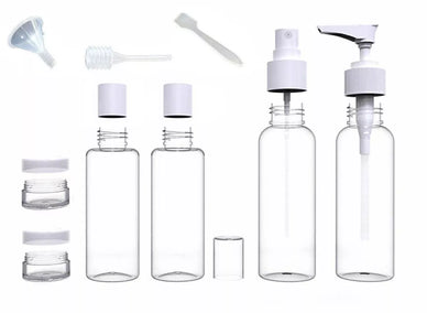 Kosmetinis kelioninis rinkinys, idealus planuojant kelionę lėktuvu. Skysčių ir kremų talpos neviršija leistinos oro linijų talpos. Mūsų rinkinys taip pat puikus sprendimas moterims, kurios kosmetiką ruošia namuose!