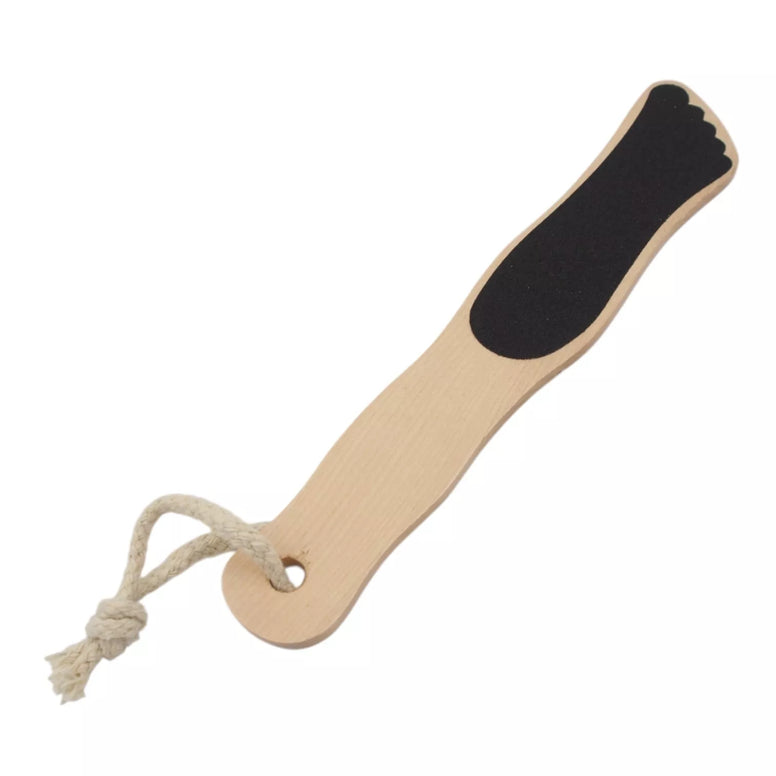 Ši medinė pėdų dildė – paprastas, bet itin efektyvus įrankis, padėsiantis palaikyti švelnią ir prižiūrėtą pėdų odą. Dildės paviršius dengtas švitrine danga, kuri veiksmingai pašalina suragėjusią, šiurkščią odą bei nuospaudas. Ergonomiškos formos rankena iš natūralios medienos patogi laikyti, o gale esanti virvelė leidžia patogiai pakabinti dildę vonioje ar duše.
