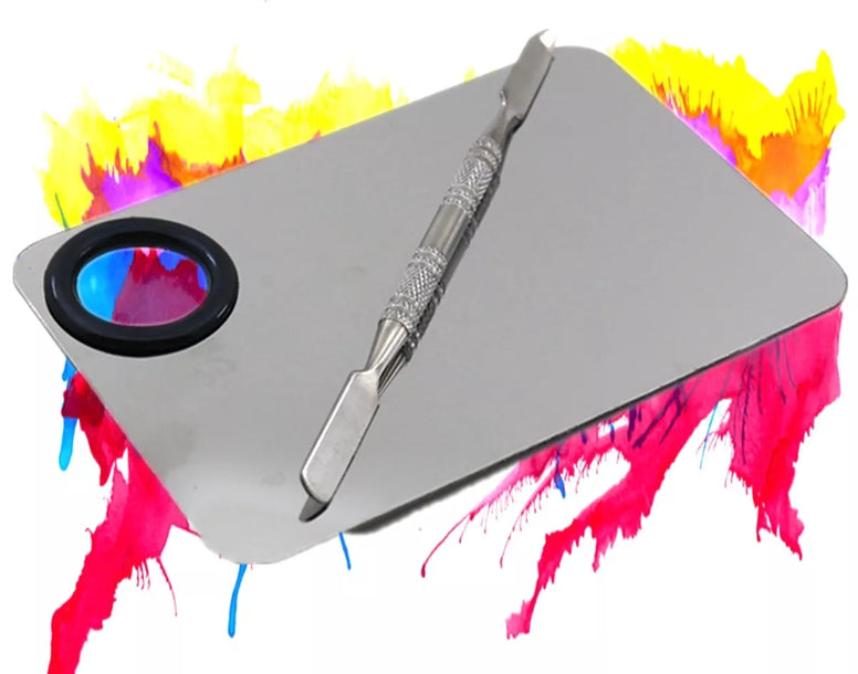 Tvirta paletė kosmetikos maišymui. Pagaminta iš nerūdijančio plieno, kuris palengvina vėlesnį jo valymą. Skirtas įvairių spalvų rašalui ir šešėliams maišyti.