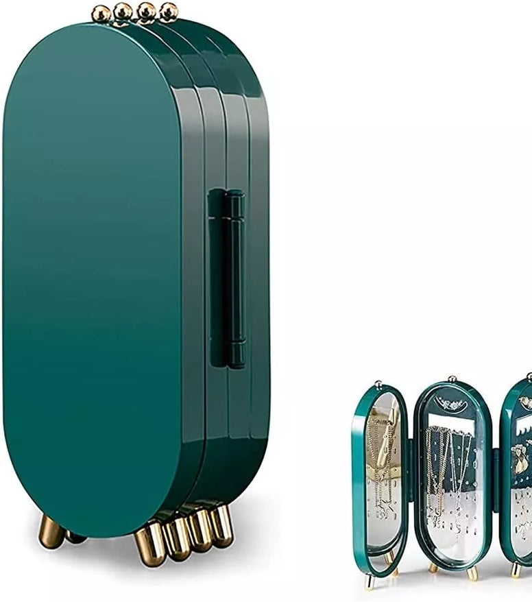 Papuošalų dėžutė su veidrodžiu (žalia, 23,5 x 11,5 x 6,5 cm)