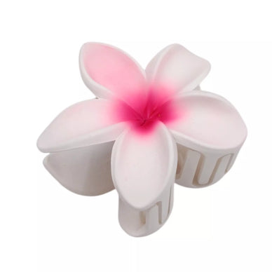 Plaukų segtukas su balta plumerija ir rožiniu centru