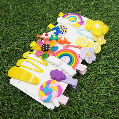 14 metalinių plaukų segtukų rinkinys. Įvairių spalvų smeigtukai žymi skirtingas vaisių rūšis. Būtinas aksesuaras formuojant ir surišant plaukus.