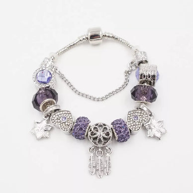 Sidabrinės spalvos apyrankė su violetiniais žėrinčiais akcentais
