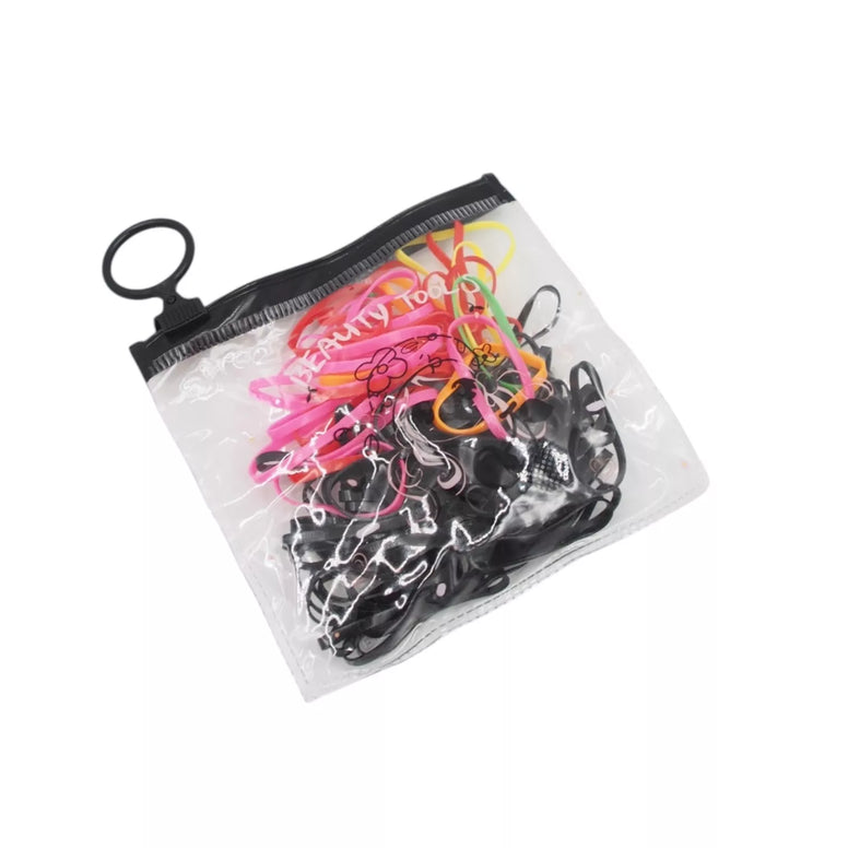 Spalvotų ir juodų plaukų gumyčių rinkinys – idealus pasirinkimas kasdieniam naudojimui. Supakuota permatomame, užsegamame maišelyje su patogia kilpele pakabinimui. Gumos minkštos, elastingos ir švelnios plaukams – nesukelia tempimo ar lūžinėjimo.